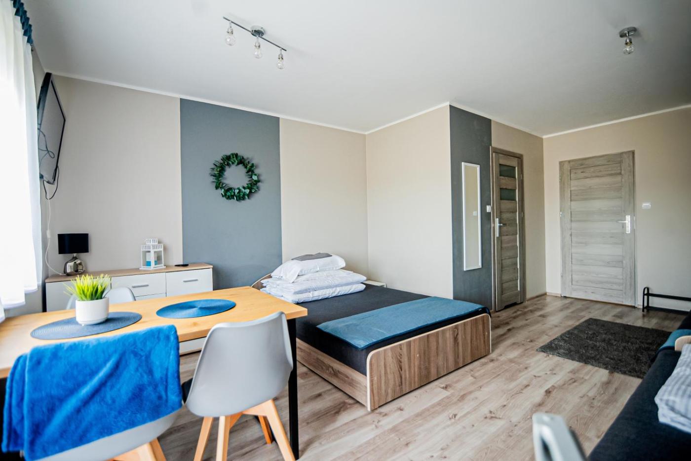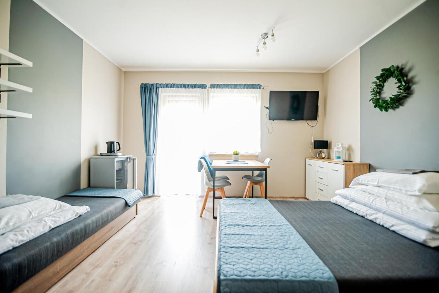 Pokój dwuosobowy. The double room offers heating, as well as a private bathroom featuring a walk-in shower. The double room provides a private entrance, a wardrobe, an electric kettle, parquet floors and a flat-screen TV with cable channels. The unit offers 2 beds. Pokój Dwuosobowy - 2 osobowy. Powierzchnia pokoju ok.: 12 mkw. ;