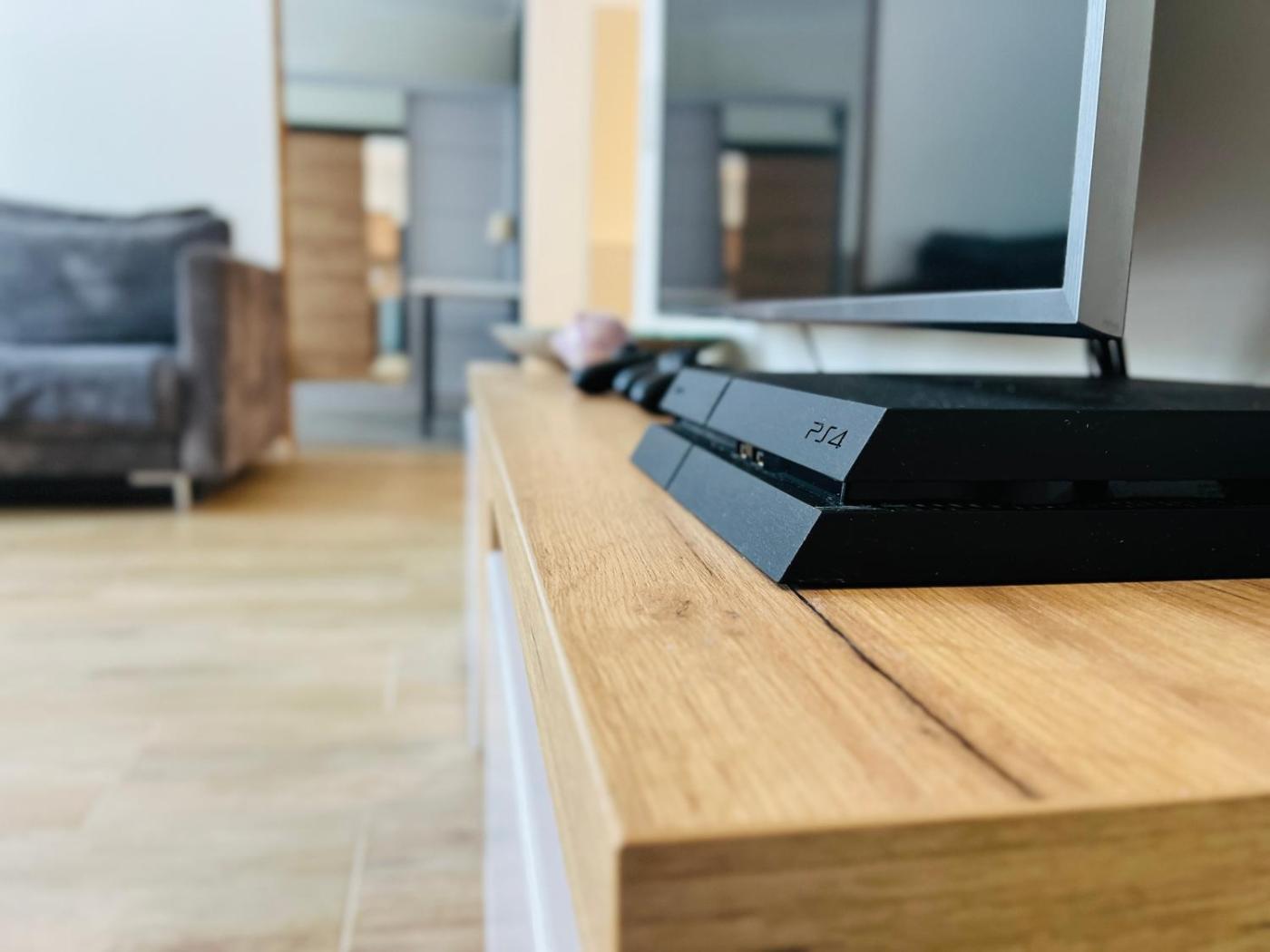 Apartament z 2 sypialniami. The apartment has 2 bedrooms, 1 bathroom and a kitchenette. Guests can make meals in the kitchenette that features a stovetop, a refrigerator, a dishwasher and an oven. The apartment features a washing machine, an electric kettle, a game console, a game console and a flat-screen TV. The unit has 2 beds. Apartament - 4 osobowy. Powierzchnia pokoju ok.: 43 mkw.