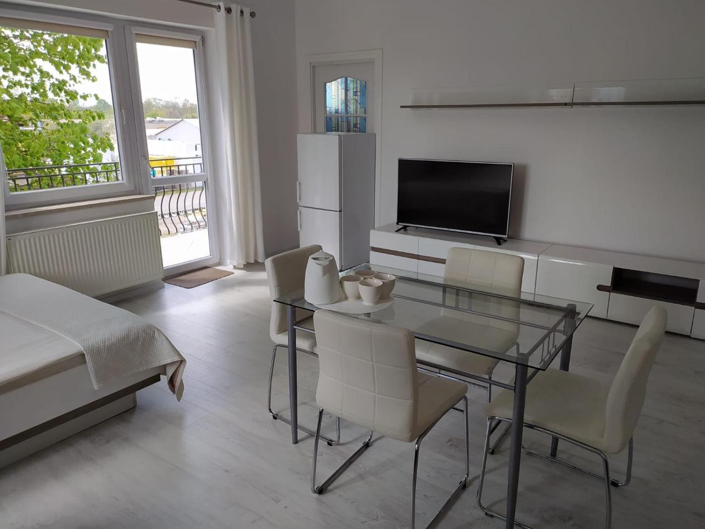 Apartament z balkonem. The apartment has 1 bedroom and 1 bathroom with a bath. Boasting a balcony with garden views, this apartment also offers a wardrobe and a flat-screen TV. The unit has 3 beds and 1 futon. Apartament - 5 osobowy. Powierzchnia pokoju ok.: 40 mkw.